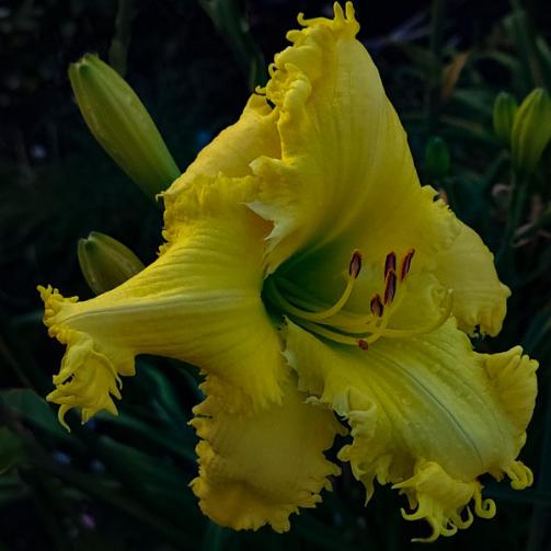 Flowers are canary yellow with chartreuse